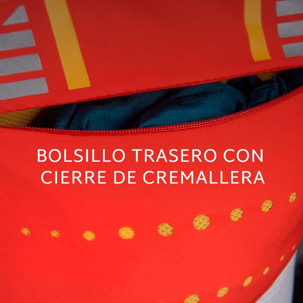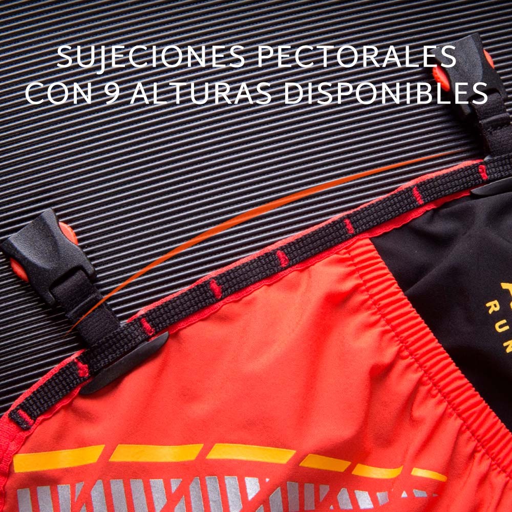 Ribetes delanteros superiores reflectantes para mejorar la visibilidad y sujeción pajita soft flask en caso de disponer de ellas o tubo hidratación water bag