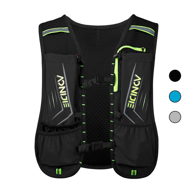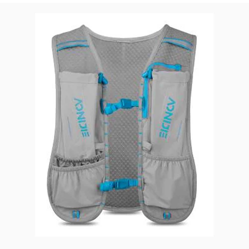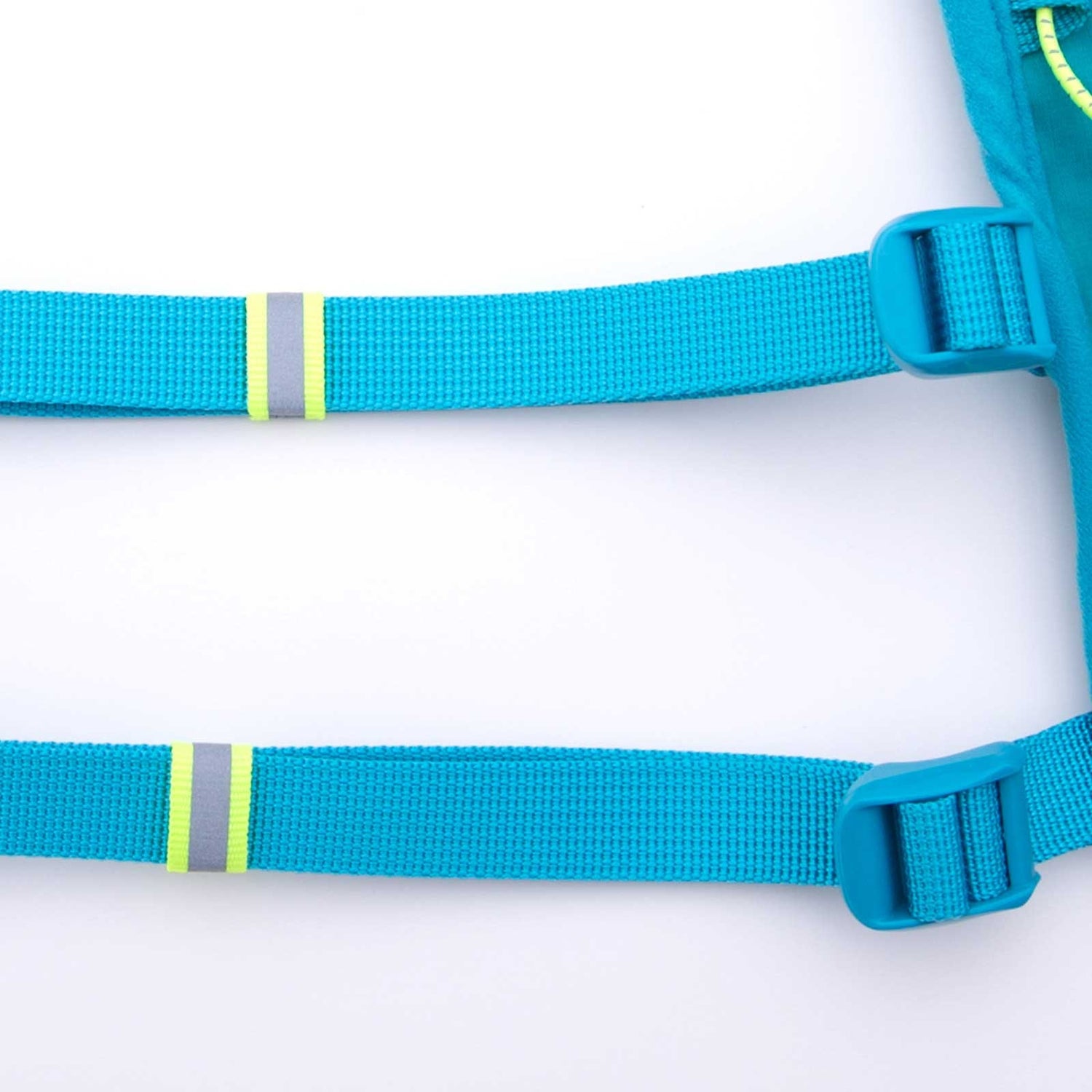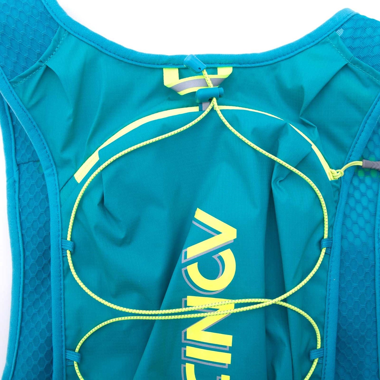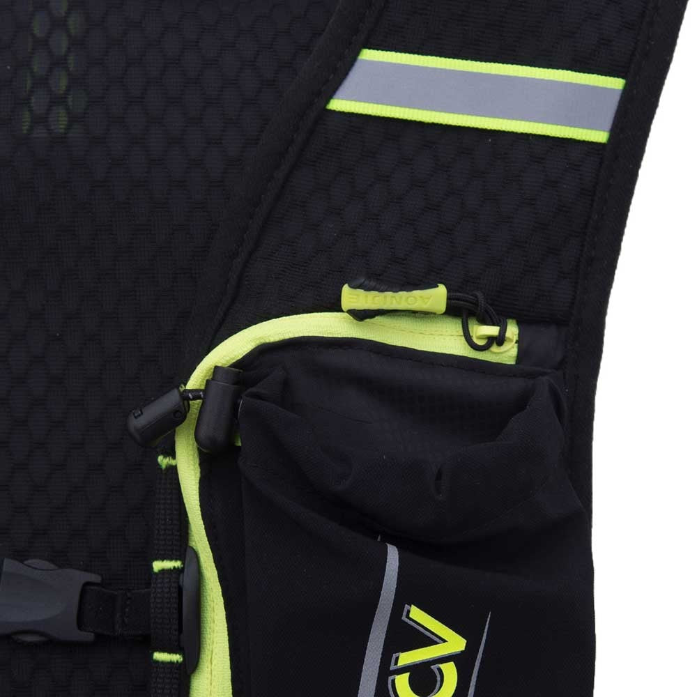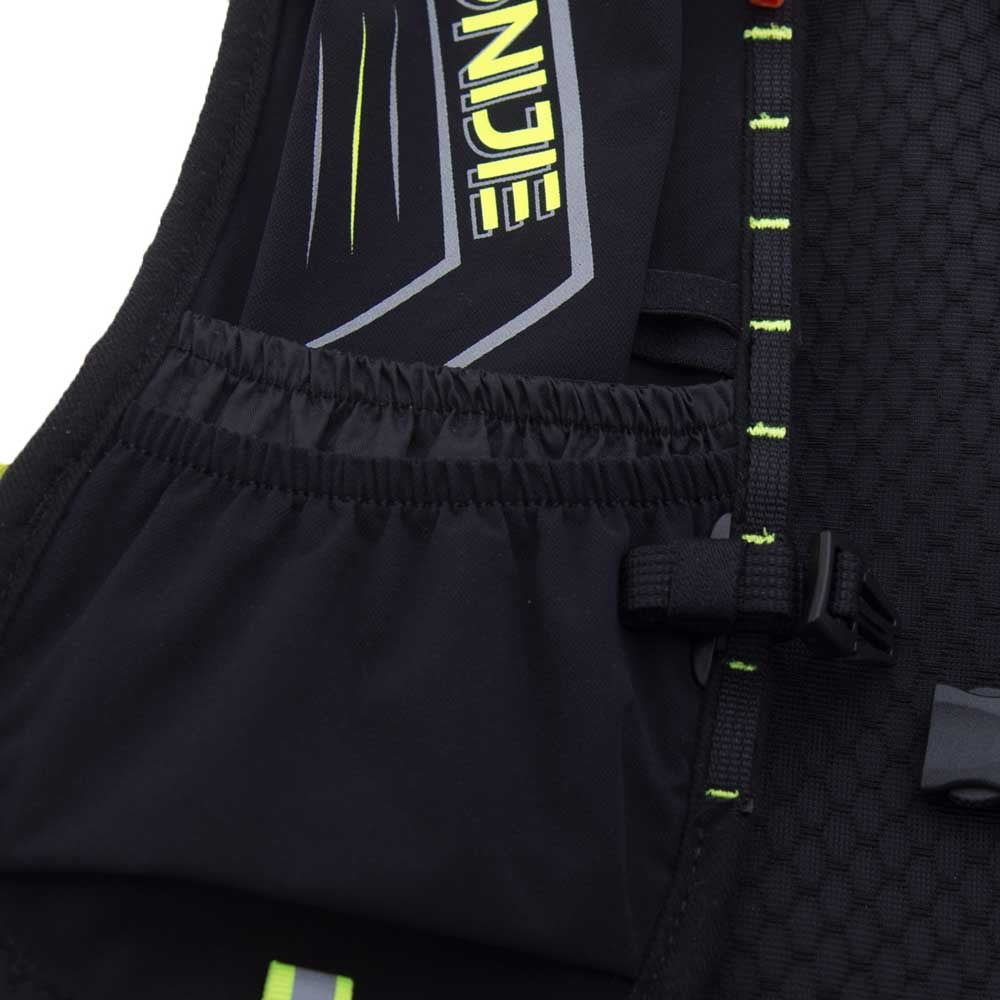 • Dos bolsillos delanteros de malla expandible con capacidad para dos soft flask (no incluidas) con cierre ajustable mediante cordón con bloqueo. Recomendación: soft flask 500ml Antimicrobiano 360º