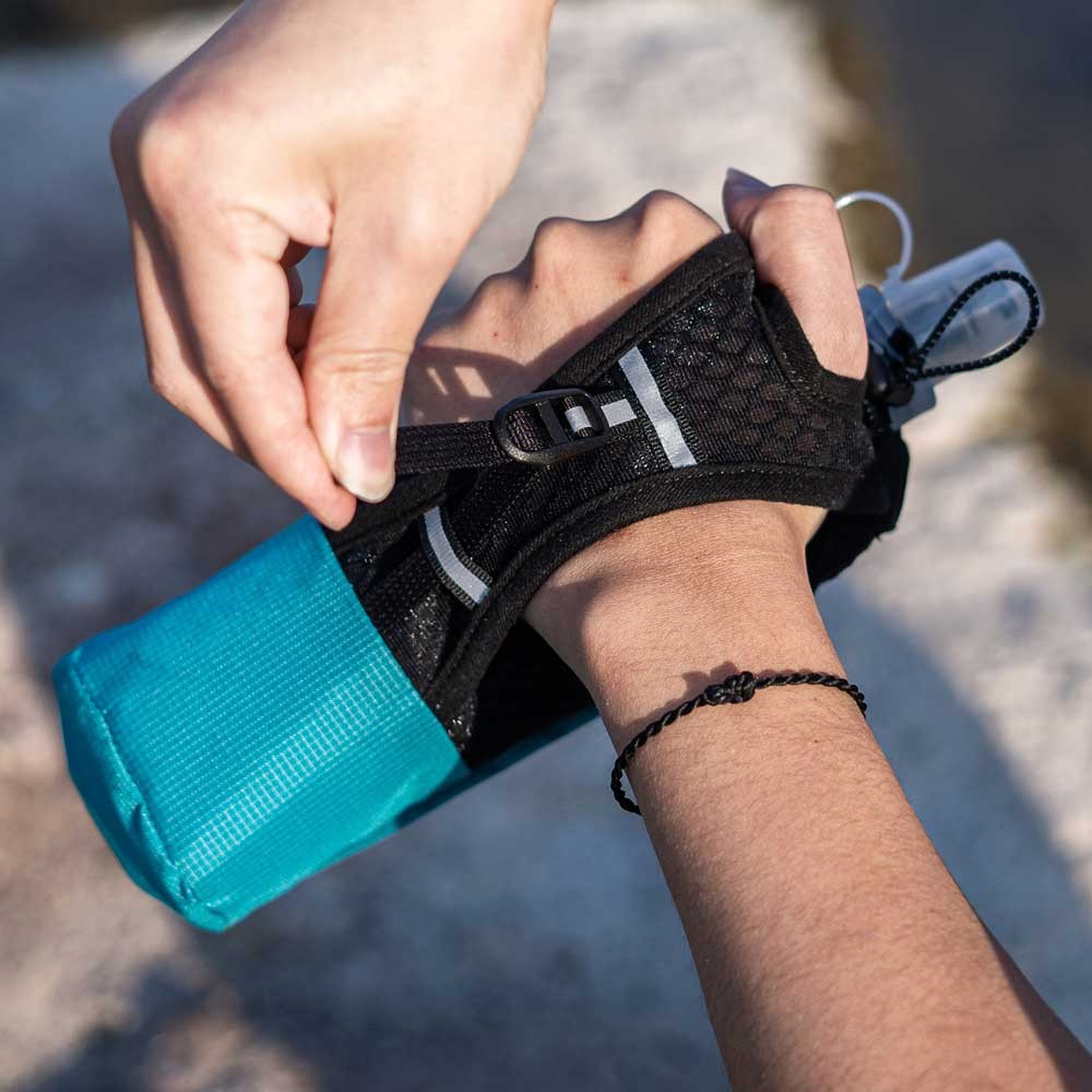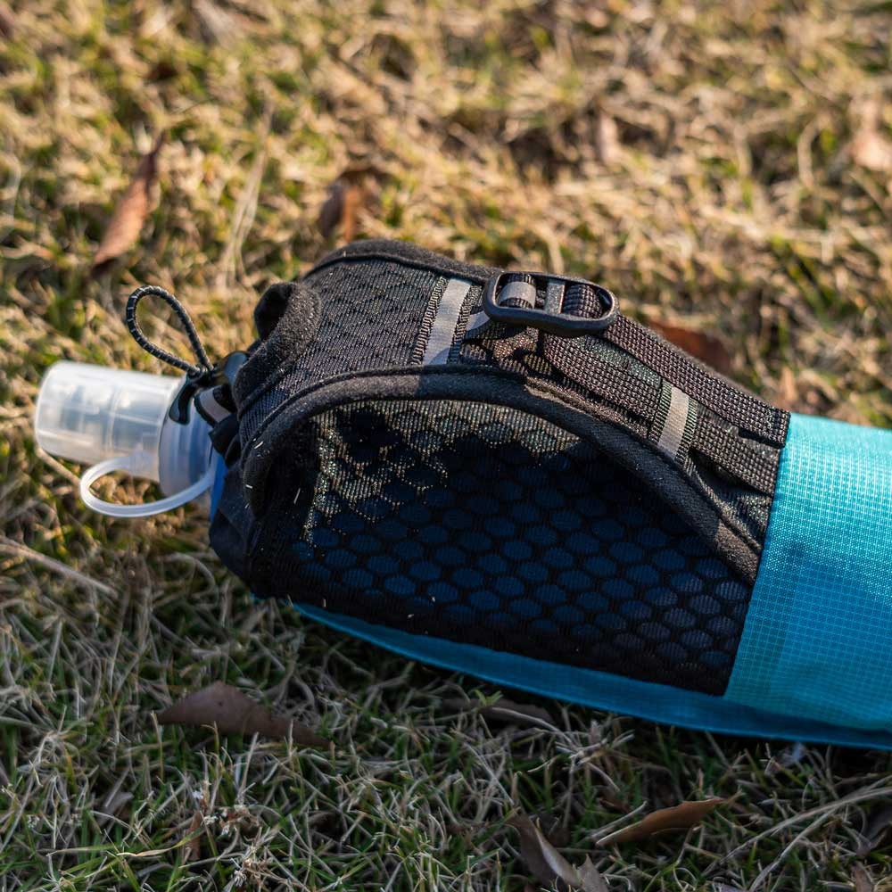 - Ajuste boca soft flask mediante elástico con bloqueador para evitar la salida del mismo, así como su fácil introducción y extracción