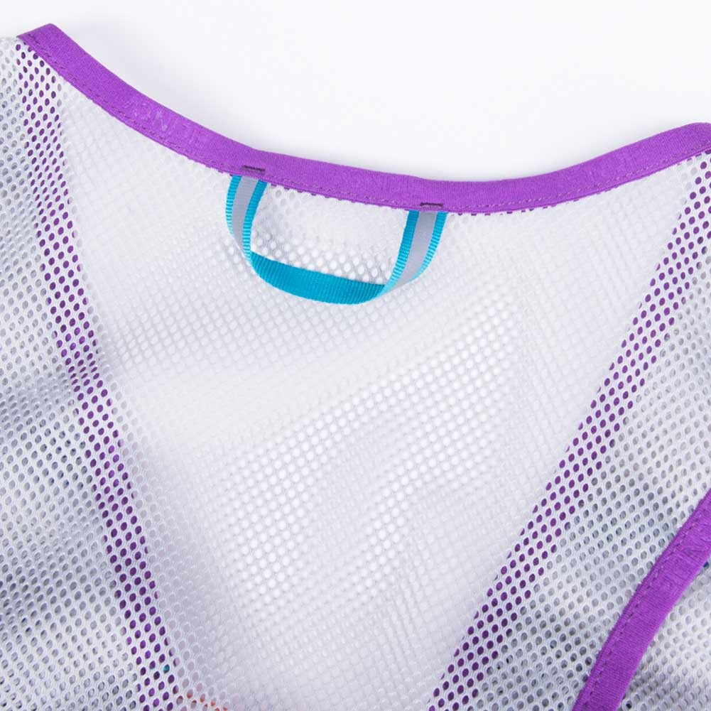 - Dos bolsillos delanteros de malla expandible con capacidad para dos soft flask de 500ml, y goma elastica con tirador reflectante para sujerar el soft flask doblemente, cierre bolsillo elástico y goma elástica