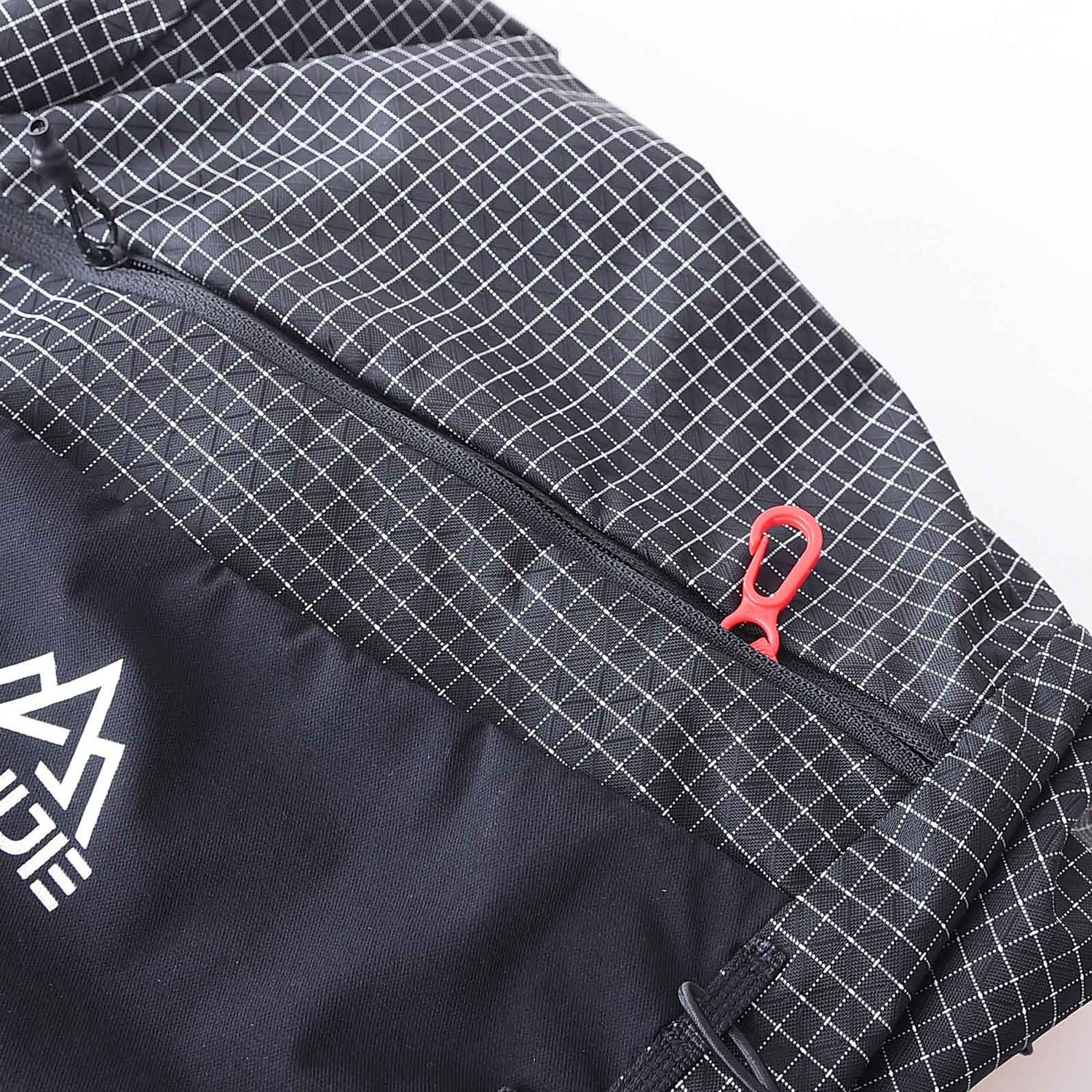 - Dos bolsillos delanteros de malla expandible y cierre de seguridad con goma con capacidad para dos soft flask AONIJIE 500ml Antimicrobiano 360º (no incluidas)