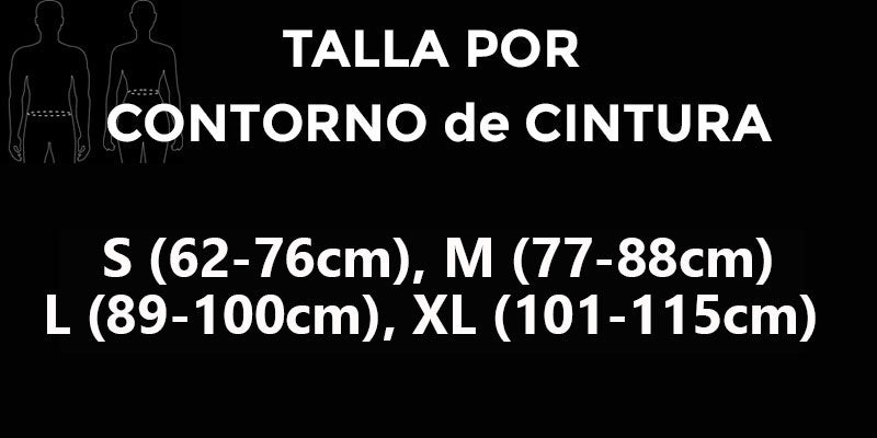 - Tallaje por contorno de cintura: S (62-76cm), M (77-88cm), L (89-100cm) y XL (101-115cm)